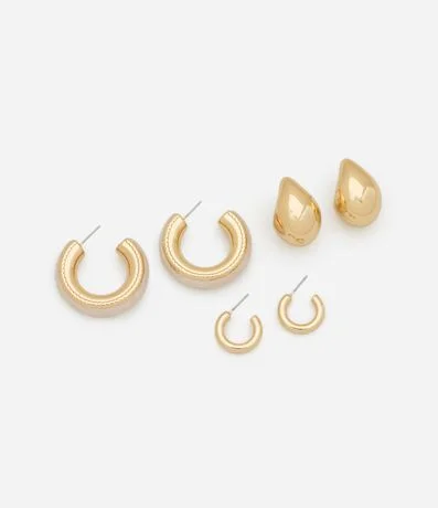 Kit 03 pares de brinco argola sendo uma bold, uma espiral e uma argola fina.