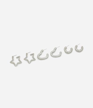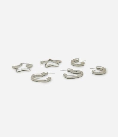 Ref: Kit 03 brincos femininos confeccionado em metal reciclado com argolas diversas, 01 estrela, 01 coração e 01 argola grossa.