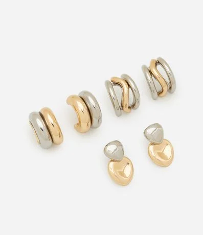 Ref: Kit 03 Brincos Argolas em metal com Formatos Diversos