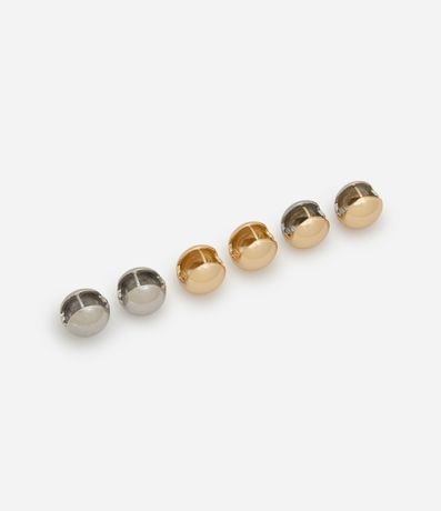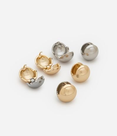 Kit com 03 brincos femininos, confeccionados em metal, com formato de esfera e banho misto.
