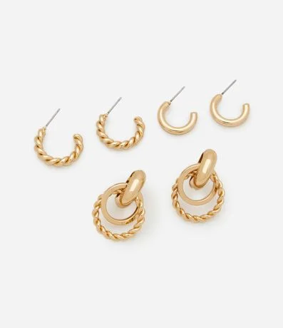 Ref: Kit com três pares de brinco de metal com banho light gold.