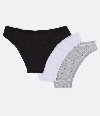 Kit com 03 calcinhas biquíni em cotton, com elástico no cós e nas cavas, 01 com estampa poá e 02 sem estampa. Delicadas e práticas, oferecem leveza e ótima respirabilidade ao corpo. Versáteis, os kits oferecem mais de uma opção para compor seus conjuntos de lingerie, por isso, são uma ótima aposta.