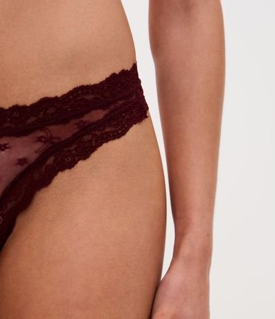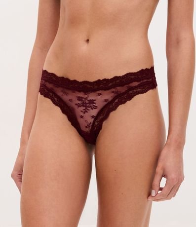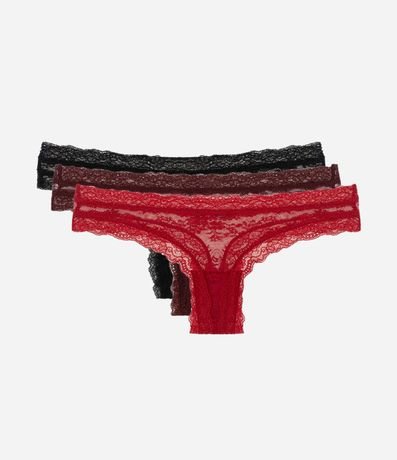 Ref: Calcinhas femininas confeccionadas em renda de poliamida e elastano, no modelo biquíni. Composto por três peças fio dental com textura floral.