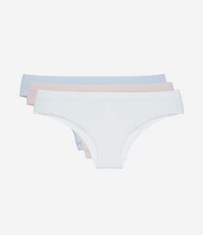 Ref: Kit com 03 calcinhas femininas confeccionadas em poliamida. Possuem modelo fio com laterais largas e sem costura.