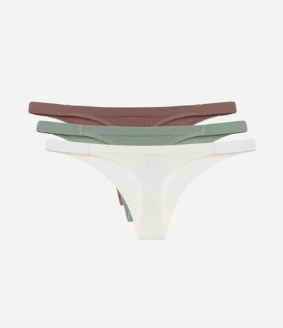 Kit com 03 calcinhas string fio femininas, confeccionadas em poliamida, com lateral fina, sem costura. As peças também possuem textura na superfície.
