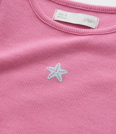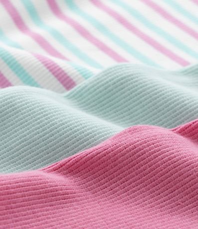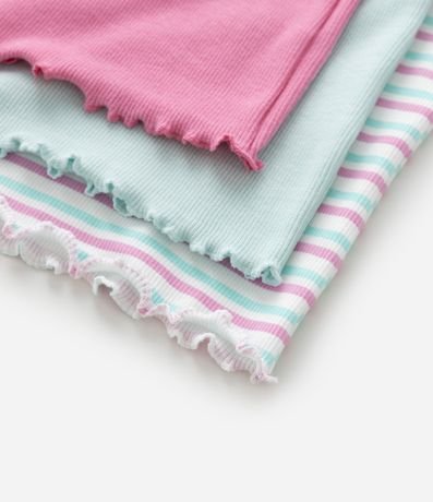 Ref: Kit com três camisetinhas de ribana com gola redonda, mangas curtas e barra frufru.