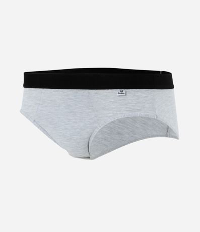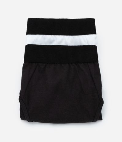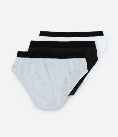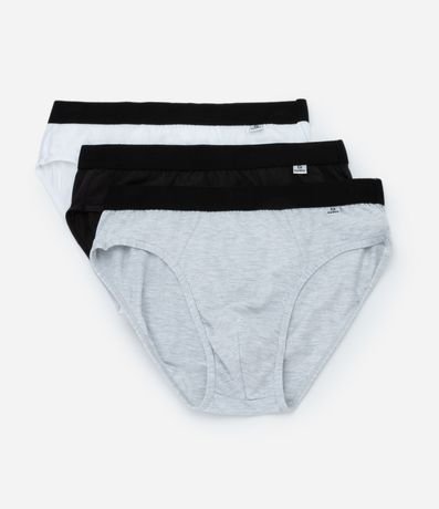 Ref: Kit com três unidades de cuecas modelo slip. As peças são confeccionadas em algodão certificado e possuem elástico aparente no cós.