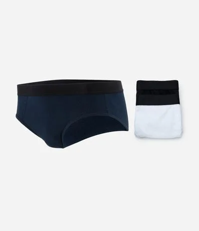Ref: Kit de cuecas masculina confeccionadas em algodão no modelo slip, com 03 unidades e cores variadas.
