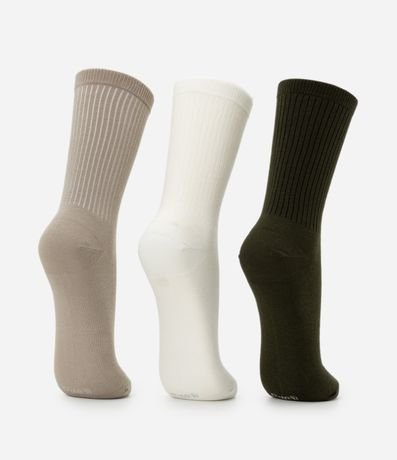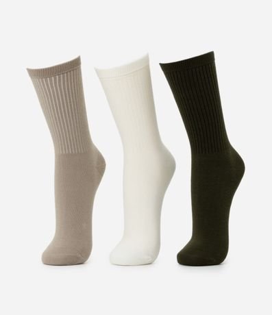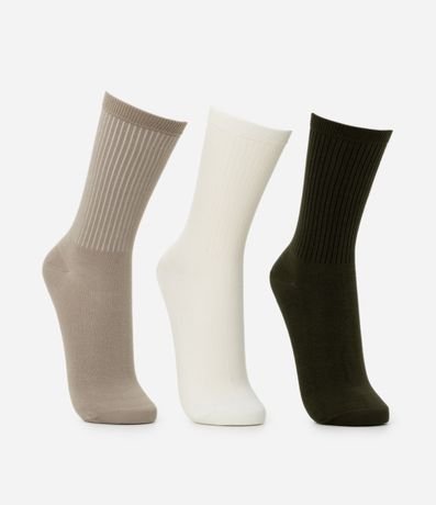 Kit com três pares de meias longas caneladas da marca Lupo.