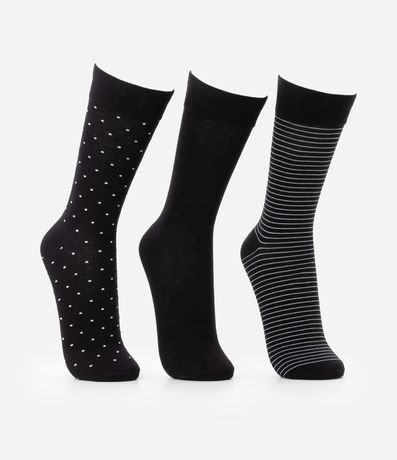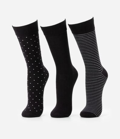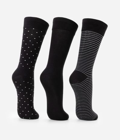 Ref: Kit 03 pares de meias de canos longos confeccionado em algodão certificado e boas práticas ambientais com estampas variadas.