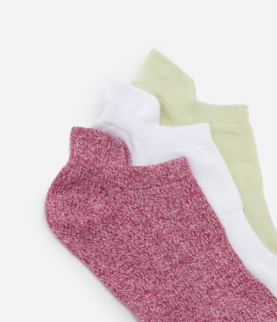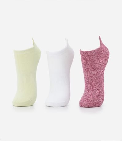 Kit com 03 pares de meia cano baixo seamless, com superfície sem estampa.