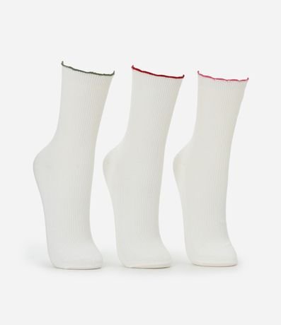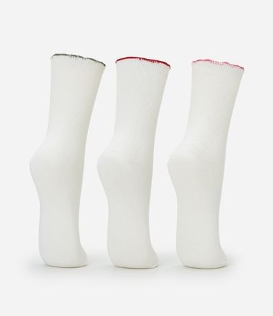 Kit 03 Meias Cano Alto em Algodão Canelado com Bordados Delicados e Frufru