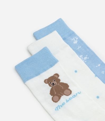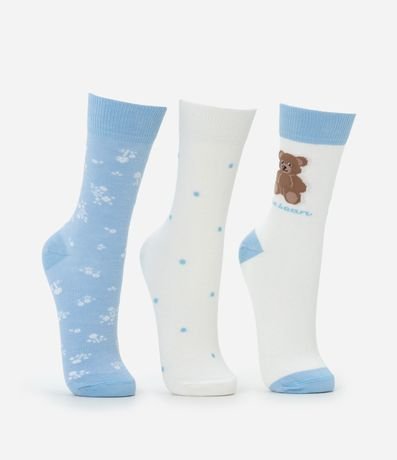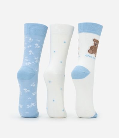 Ref: Kit com três pares de meia de algodão com cano alto. Cada para tem uma estampa diferente.