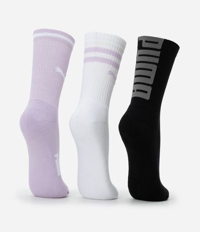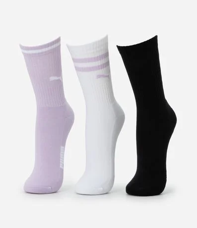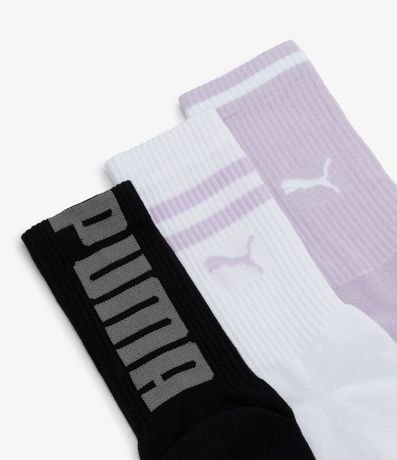 Kit com 03 pares de meia esportiva Puma, modelo cano alto, confeccionadas em material leve e macio, que garante maior conforto e respirabilidade para os seus pés.