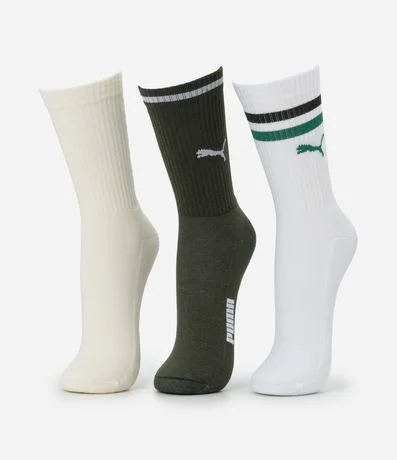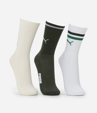 Ref: Kit com 03 pares de meia esportiva Puma, modelo cano alto, confeccionadas em material leve e macio, que garante maior conforto e respirabilidade para os seus pés.