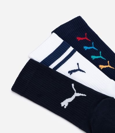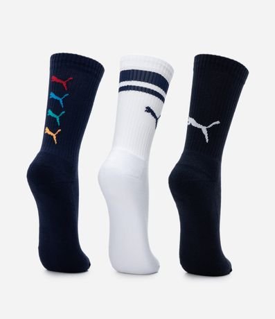 Ref: Kit com 03 pares de meia esportiva Puma, modelo cano alto, confeccionadas em material leve e macio, que garante maior conforto e respirabilidade para os seus pés.