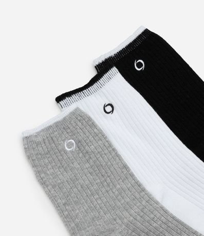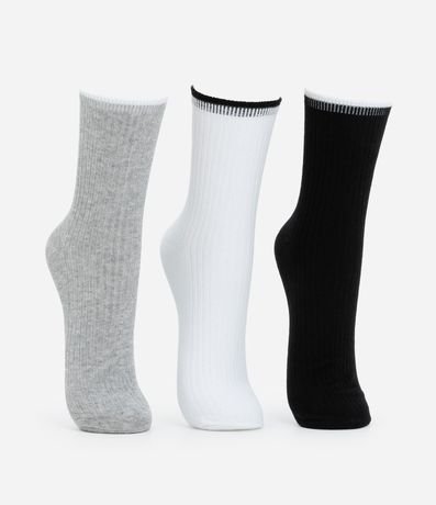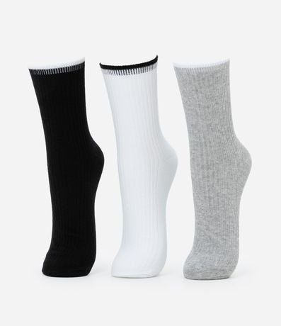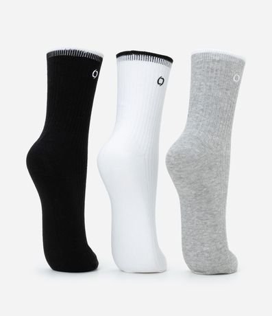Ref: Kit com três pares de meias longas de algodão com bordadinho Get Over no cano.