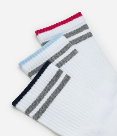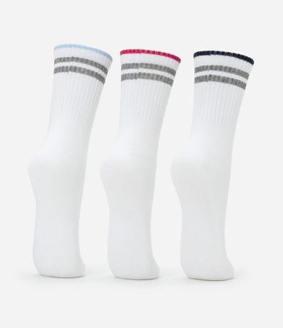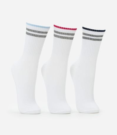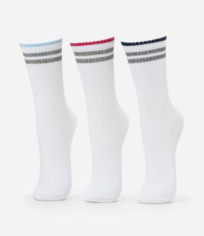 Ref: Kit com três pares de meias confeccionadas com algodão certificado BCI. As peças têm cano longo e estampa de listras.