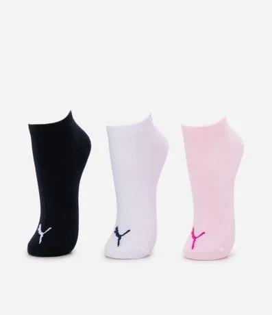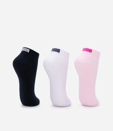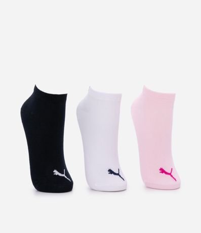 Ref: Kit com 03 meias cano baixo em algodão e estampas da Puma.
