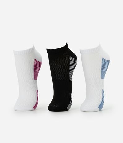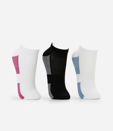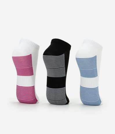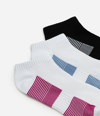 Ref: Kit com três pares de meias confeccionadas em algodão, com cano baixo e acabamento confortável. Cada par possui listras coloridas em combinações diversas, garantindo estilo.