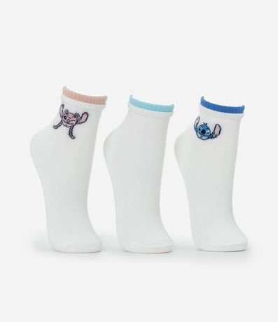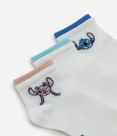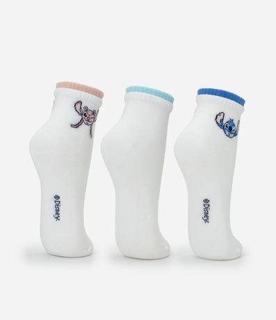 Ref: Kit com 03 meias confeccionadas em algodão mais sustentável através de boas práticas ambientais. Modelo cano baixo com punho duplo colorido e superfície lisa, trazendo aplicação dos personagens Stitch e Angel do universo Disney para compor looks divertidos com conforto.
