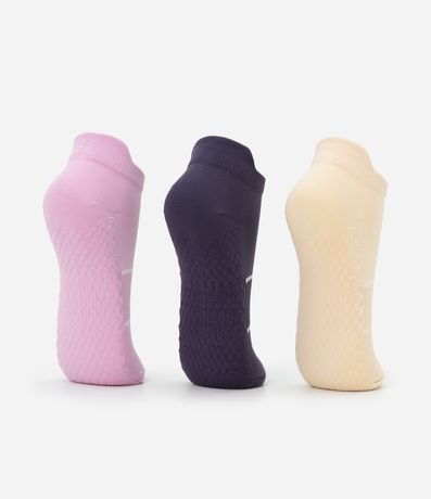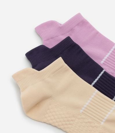 Kit com três pares de meias esportivas confeccionadas em poliamida.