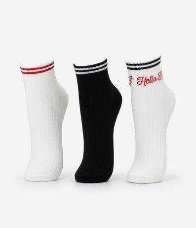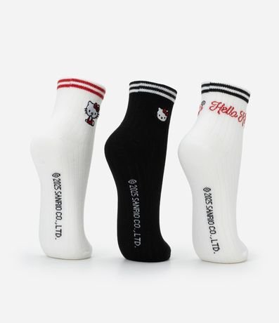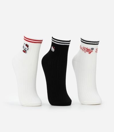 Ref: Kit com três pares de meias com cano médio e bordado Hello Kitty.