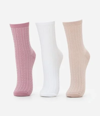 Ref: Kit com três pares de meias médias texturizadas confeccionadas com algodão BCI.