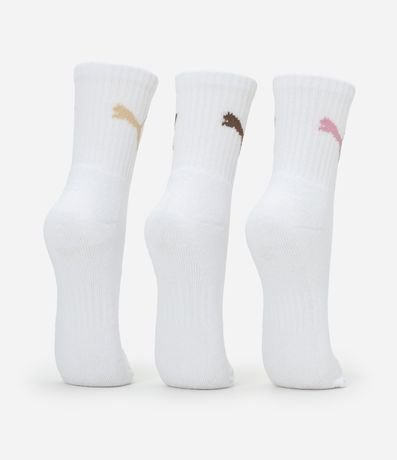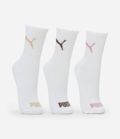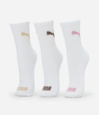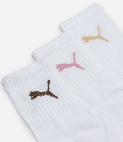 Ref: Kit com três pares de meias de algodão. As peças têm cano médio e estampa Puma.