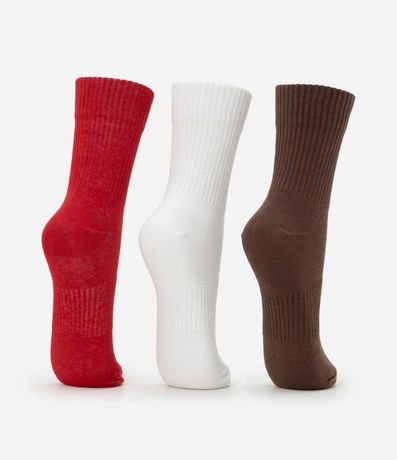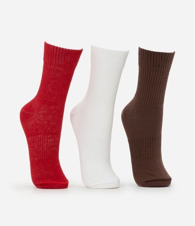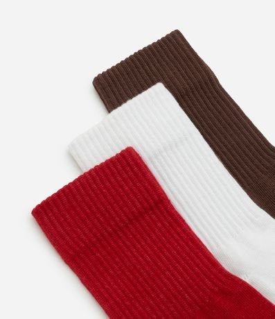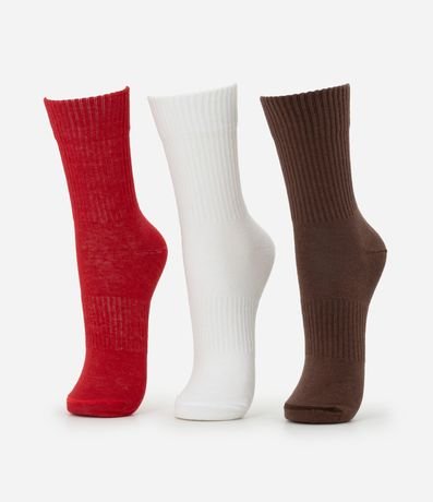 Kit com três pares de meias medianas confeccionadas em algodão e com textura canelada.