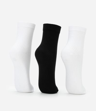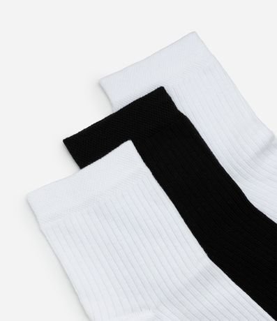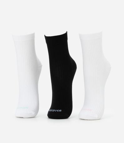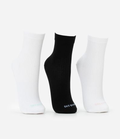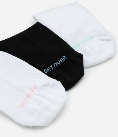 Ref: Kit com três pares de meias esportivas confeccionadas com algodão e poliamida. As peças têm cano alto e estampa do logo Get Over coloridinha.