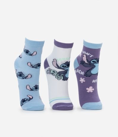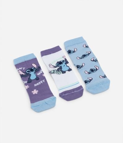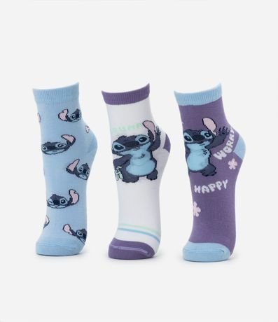 Ref: Kit com 03 pares de meias infantis com cano médio, confeccionadas em algodão e com estampa do Stitch.