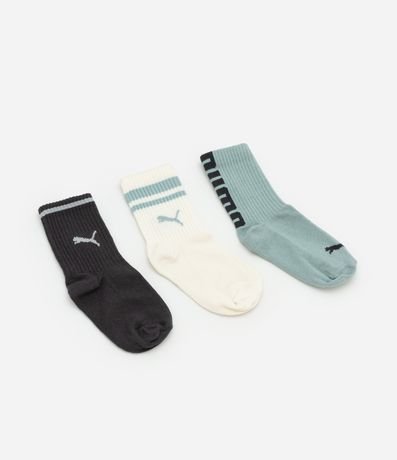 Ref: Kit com 03 pares de meias infantis, confeccionadas em algodão, com cano médio, com estampa Puma.