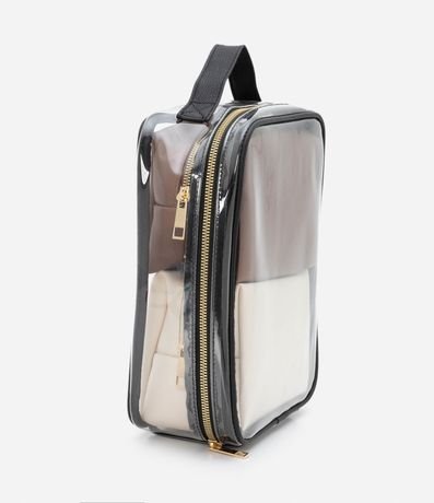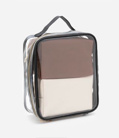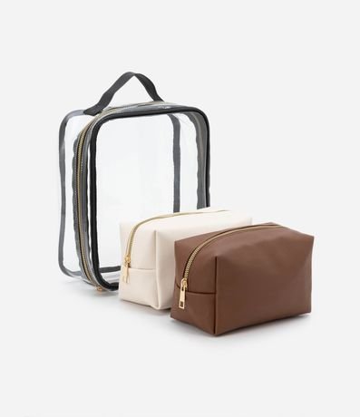 Ref: Kit com 3 nécessaires com alça, uma grande transparente, duas retangulares médias e com fechamento por zíper