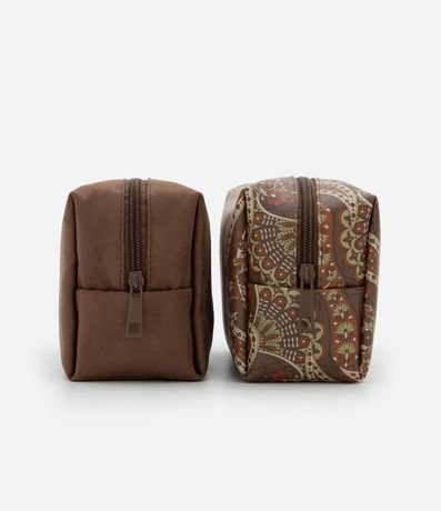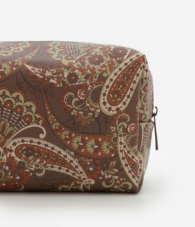 Ref: Kit com 03 necessaires femininas confeccionadas em poliéster mais sustentável. Composta por uma peça grande em PVC transparente com alça e zíper, acompanhada de duas necessaires médias retangulares: uma lisa e outra com estampa paisley.