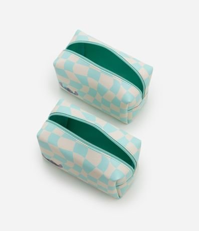 Ref: Kit composto por uma nécessaire grande transparente com alça de mão e duas médias retangulares com estampa Stitch Playa.