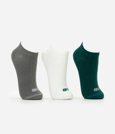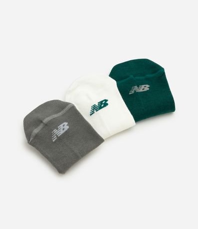 Kit 03 Pares de Meias com Cano Curto Estampa New Balance Verde/Cinza/Branco