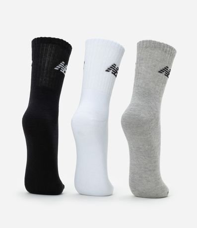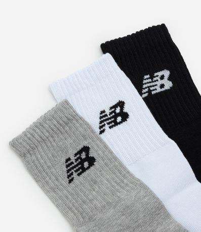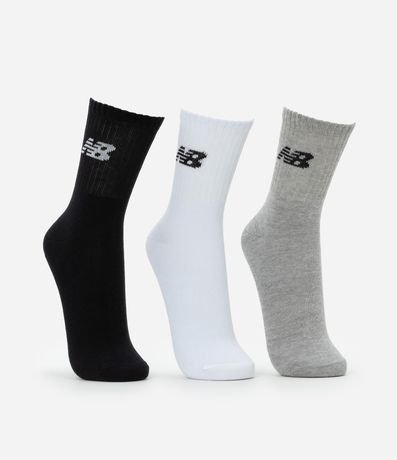 Ref: Kit par de meias com 03 unidades, modelo de cano longo, sortido com estampa new balance.