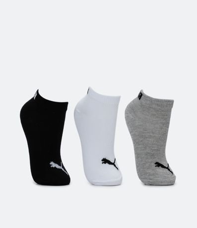 Ref: Kit com 03 pares de meias cano baixo em algodão, com estampa Puma.