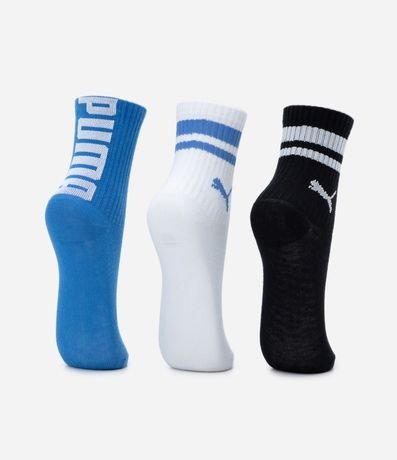 Ref: Kit 03 pares de meia infantis modelo cano médio e com estampa clássica da Puma.