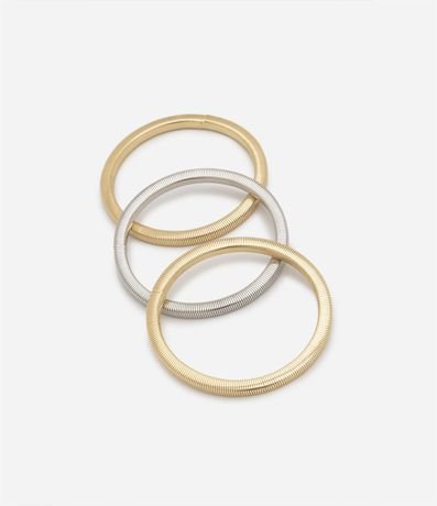 Ref: Kit com 03 pulseira em metal rabo de rato, uma prateada e duas douradas.