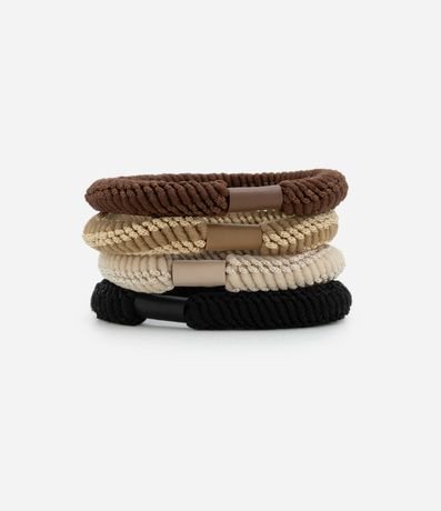 Kit com 04 borrachinhas de cabelo feminina texturizadas, confeccionadas em poliéster.