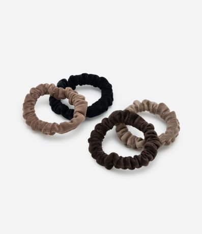 Ref: Kit com 04 borrachinhas de cabelo confeccionados com poliéster. Possui modelo mini scrunchie com acabamento franzido.