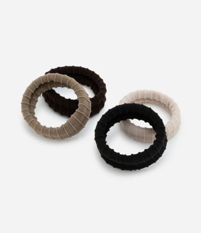 Ref: Kit com quatro elásticos de cabelo caneladas, em duas cores diferentes.