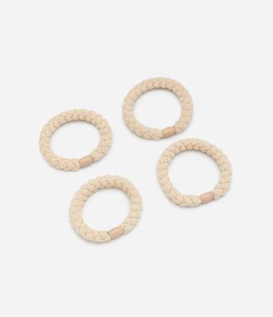 Ref: Kit com 4 elásticos de cabelo, modelo grossinho, com textura suave e acabamento em courino.