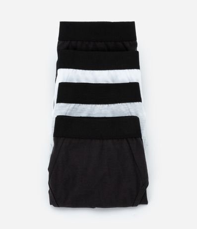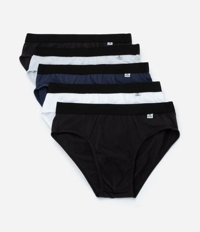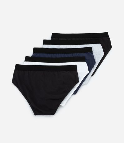 Kit com cinco unidades de cuecas modelo slip. As peças são confeccionadas em algodão certificado e possuem elástico aparente no cós.