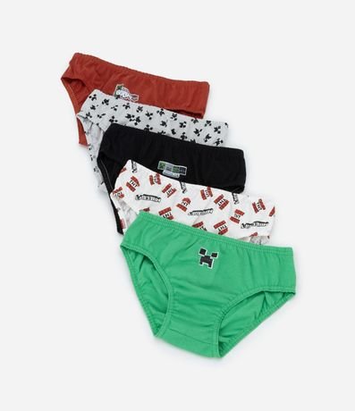 Kit 05 Cuecas Slip Infantil com Estampa Minecraft - Tam 4 a 14 Anos