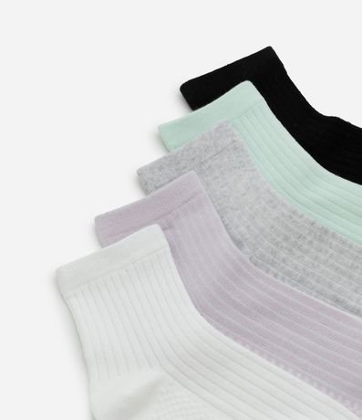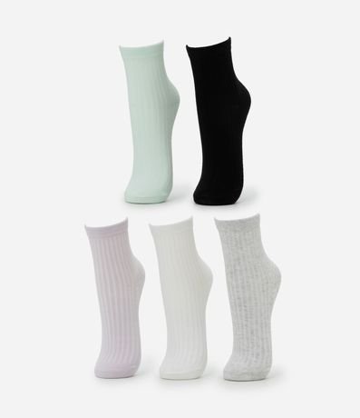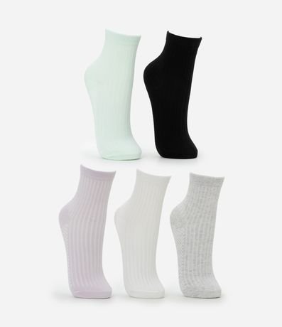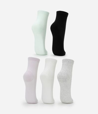 Ref: Kit com cinco pares de meias médias de algodão BCI. Textura canelada.