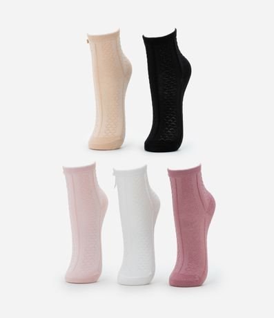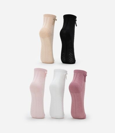 Kit 05 Meias Infantis Texturizadas com Lacinho - Tam 19 a 34