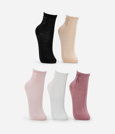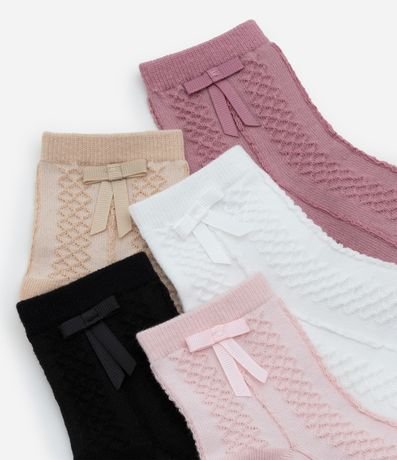 Kit com 05 pares de meias infantis de cano médio, com textura e lacinho aplicado.